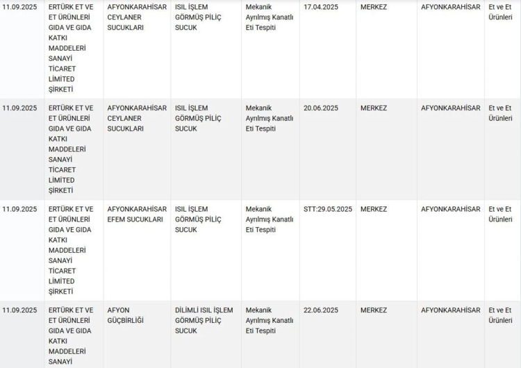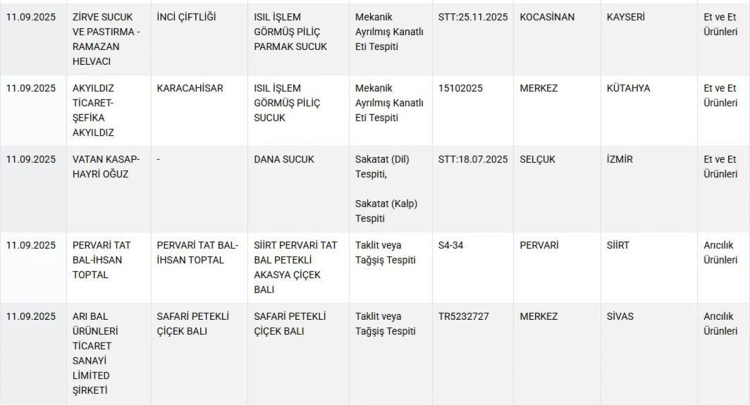 Tarım ve Orman Bakanlığı, gıda denetimlerinde taklit ve tağşiş yapan markaları ifşa etti. Dana sucukta, sakatat ve kanatlı eti karıştırıldığı tespit edildi. Peynirde, gıdada kullanımı yasak olan natamisin maddesi bulundu.