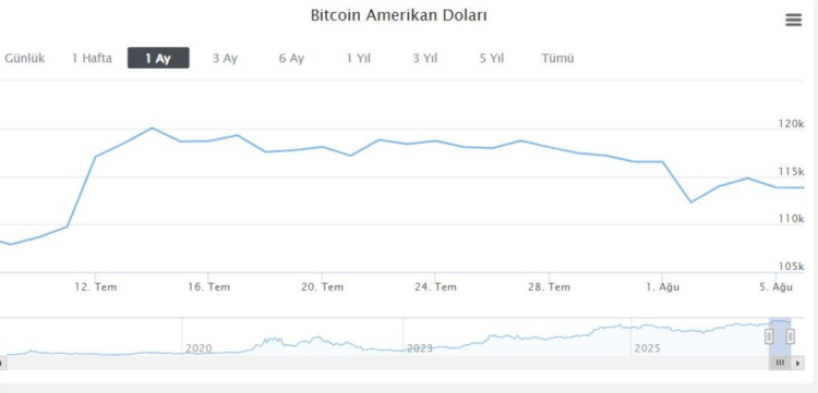 Bitcoin'de son dakika haberleri yatırımcılar tarafından yakından takip edilirken, kripto para piyasası hareketlendi. Temmuz ayında 23 bin 235 dolara kadar yükselerek tarihi rekorunu kıran Bitcoin (BTC), düşüş trendine geçti. Son 3 haftadır zirvesinden uzakta bir görüntü sergileyen Bitcoin, son 1 haftalık süreçte en düşük 112 bin doları test etti.