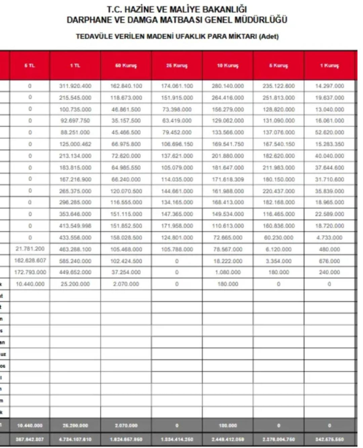 Darphane, 2026 yılı itibarıyla bazı madeni paraları basmayı tamamen bıraktı. 2024 yılında 25 kuruşun basımını durduran Darphane, artık 1 ve 5 kuruş da basmayacak.