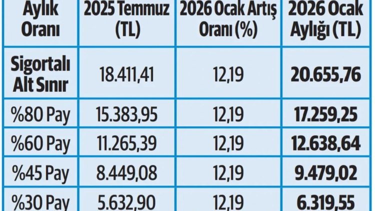 Bu nedenle SSK, Bağ-Kur, Tarım SSK ve Tarım Bağ-Kur emeklileri ile dul-yetim maaşları Ocak 2026’dan itibaren %12,19 artırıldı.