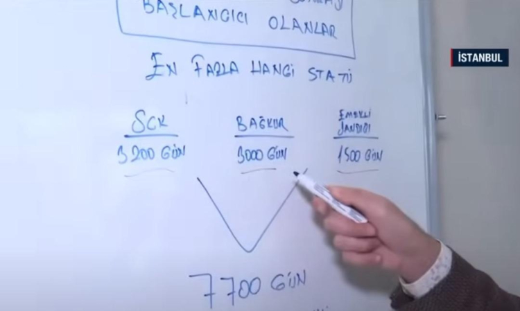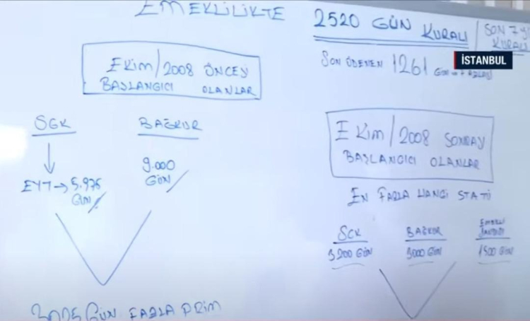 7 kuralının geçerli olmadığı durumları anlatan Çetinkaya "Burada bir kıstas belirlemiştik, bir tarih belirlemiştik, Ekim 2008 ve sonrası sigorta girişi başlangıcı olanlardaki kriter ne? 2520 kuralı yok. Burada ben bir örnekleme yaptım, bu örneklemeleri gün olarak da farklı varyasyonlara dağıtabiliriz. Benim vermiş olduğum örneklemede bir vatandaşın toplam 7700 gün prim gün ödemesi var, diyelim 3200 gün SSK'dan ödemiş, 3000 gün BağKur'dan ödemiş, bir de memuriyet hayatı olduğunu varsayalım, 1500 gün oradan ödemiş toplam 7700. Burada bakıyoruz en fazla hangi kuruma prim ödedi ise oradan emekliyor. Yani burada en fazla Sosyal Güvenlik SGK'dan yani 4A statüsünden prim ödedi ise SSK'dan emekli oluyor." dedi.