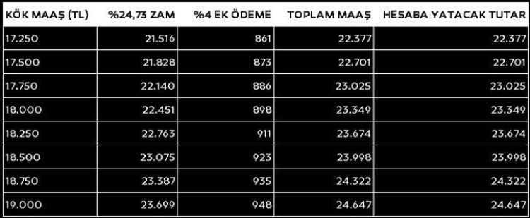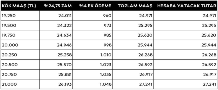 İŞTE EK ZAMLI EMEKLİ MAAŞ TABLOSU (TEMMUZ 2024)