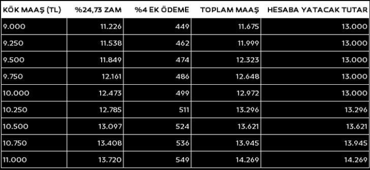 Ekonomi Gazetesi’nin haberine göre, Erdoğan’a sunulan raporda, en düşük emekli maaşı alanlara; bin 500, 2 bin ve 2 bin 500 TL zam yapılmasının bütçeye yükü kalem kalem anlatıldı. Yapılacak zammın ise Hazine’den karşılanacağı belirtiliyor.