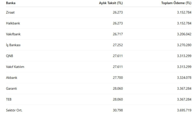 İşte bankaların 1 milyon TL'lik konut kredisinin geri ödemesi: