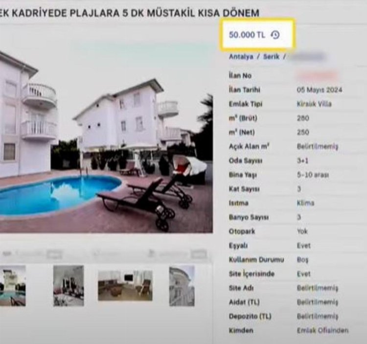 Bu yaz tatil yapmak adeta lüks oldu. 'Oteller pahalı' diye tatil yapmak için kiralık ev bakanlar, ilan sitelerinde gördükleri fiyatlarla adeta şoke oldu. Otellerdeki tatil fiyatları cep yakarken, kiralık yazlık fiyatları ise otelleri bile geride bıraktı. Bodrum'da denize uzak dubleks evin aylık kirası 65 bin TL olurken, denize sıfır özel havuzlu, özel plajlı villa içinse 3 milyon 300 bin TL isteniyor.