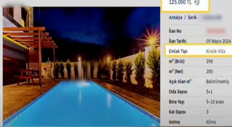 ÖZEL HAVUZLU VİLLANIN AYLIK KİRASI 3 MİLYON 300 BİN TL