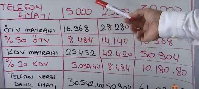 Öte yandan ÖTV ve KDV kaldırıldığında cep telefonu fiyatlarında çarpıcı bir düşüş yaşanıyor. Mali müşavir Serkan Kumdakcı hesaplamayı şöyle anlattı: