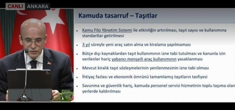 Kamuda tasarruf tedbirleri genişletiliyor. A'dan Z'ye tüm kalemler gözden geçirilecek. Kurumların tamamı elini taşın altına koyacak. Son dönemin en çok tartışılan konularından olan kamuda taşıt alımları 3 yıl süre ile durdurulduğu açıklandı. Konunun tüm detaylarına ilişkin tüm merak edilenleri Hazine ve Maliye Bakanı Mehmeh Şimşek canlı yayında açıkladı.