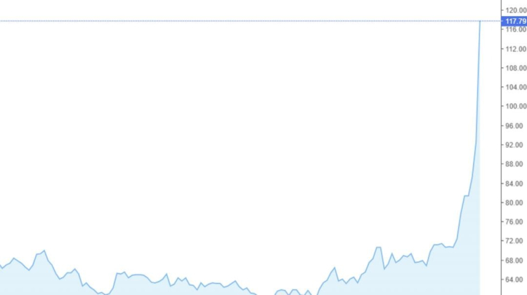 -TSİ 06:20 itibarıyla Brent petrol fiyatı 115 dolar ve ABD ham petrolü 114 dolara yakın denge arayışını sürdürüyor.