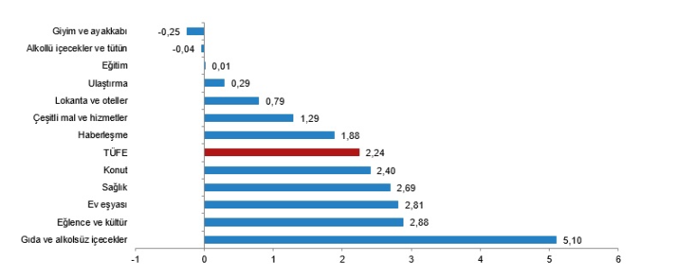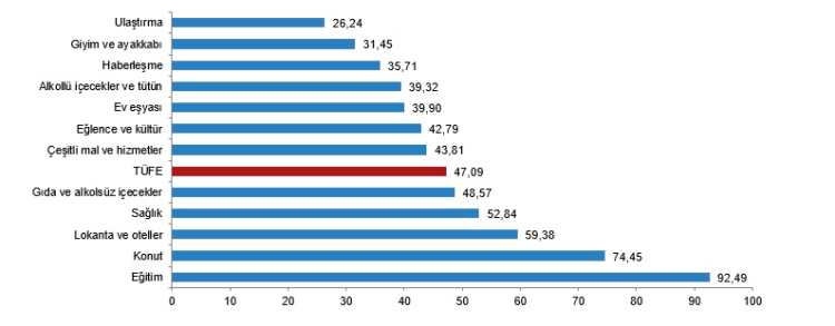 Bir önceki yılın aynı ayına göre en az artış gösteren ana grup yüzde 26,24 ile ulaştırma oldu. Buna karşılık, bir önceki yılın aynı ayına göre artışın en yüksek olduğu ana grup ise yüzde 92,49 ile eğitim oldu.