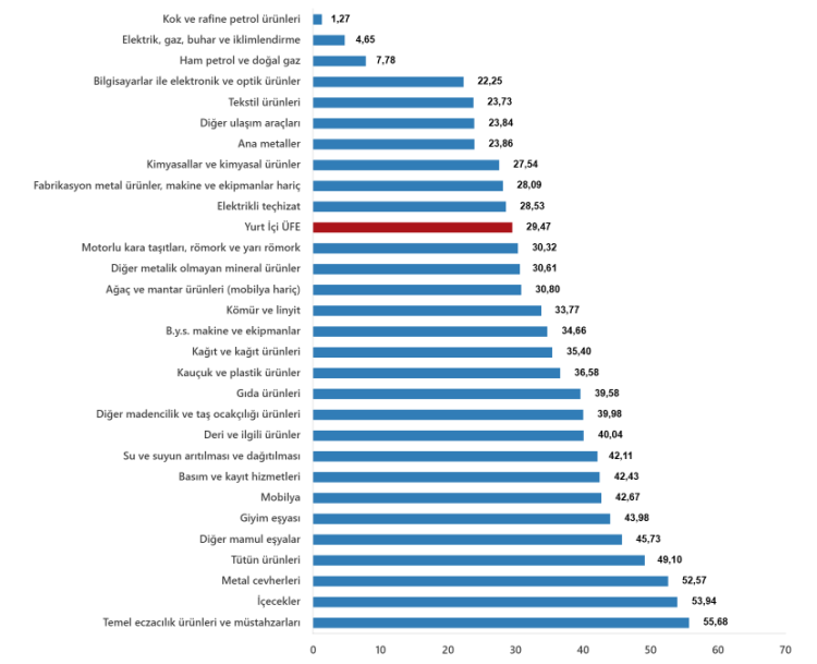 Yİ-ÜFE imalat ürünlerinde yıllık yüzde 31,31 arttı