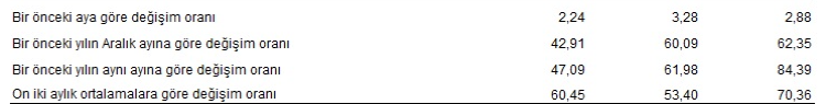 Bir önceki yılın Aralık ayına göre değişim oranı