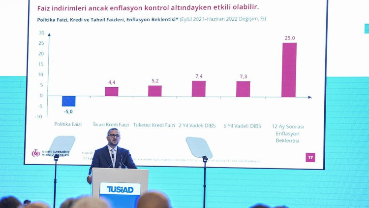 Türkiye Cumhuriyet Merkez Bankası Başkanı Fatih Karahan, Türk Sanayicileri ve İş İnsanları Derneği (TÜSİAD) Yüksek İstişare Konseyi Toplantısı'na onur konuğu olarak katıldı. Karahan burada yaptığı konuşmada ekonomiye dair önemli açıklamalar yaptı. Karahan, "Merkez Bankası'nın politika faizlerini düşürdüğü dönemde piyasa faizleri neden yükseldi?" sorusuna cevap verdi.