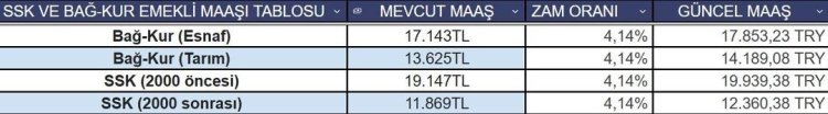 Emeklilerin 2 aylık enflasyon farkı doğrultusunda şimdiden hak kazandığı zam oranına tablo şu şekilde: