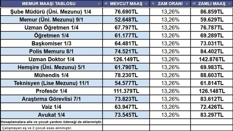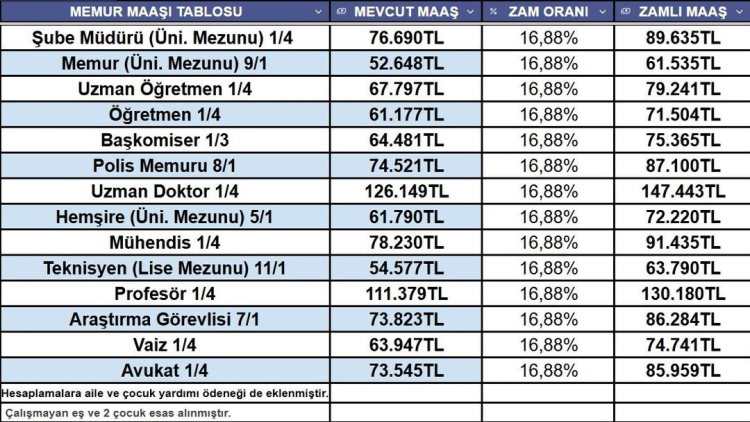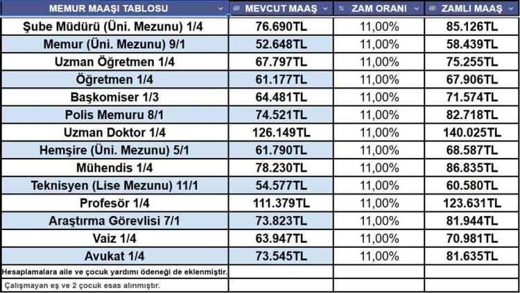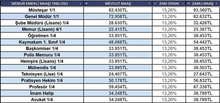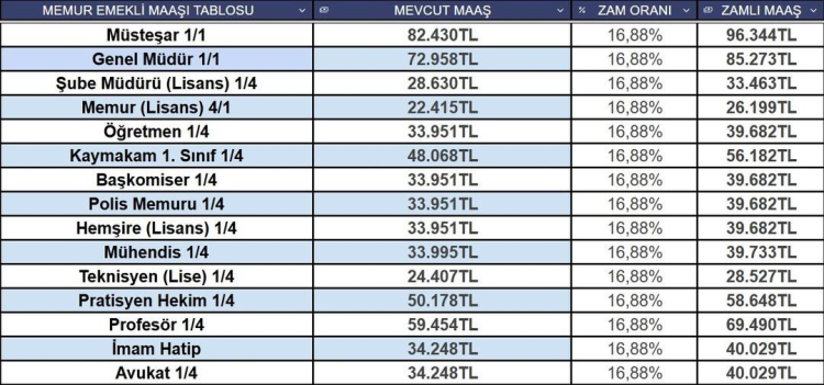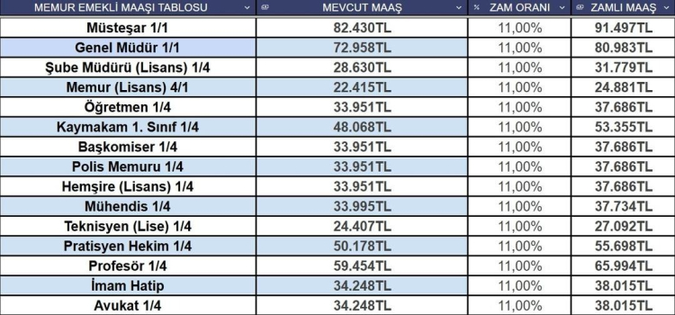 MEMUR VE MEMUR EMEKLİSİ ZAM TABLOSU