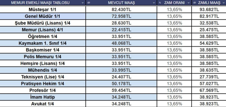 3 AYLIK ENFLASYON FARKINA GÖRE MEMUR EMEKLİSİ MAAŞ TABLOSU