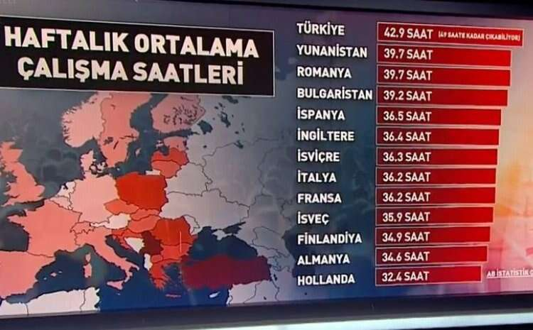 Türkiye'de yapılan düzenlemeyle 35-40 bandına çekilmesi bekleniyor. Bu sürelerle Türkiye'de çalışanlar Avrupa ülkelerine göre 6 saat fazla çalışmış oluyor.