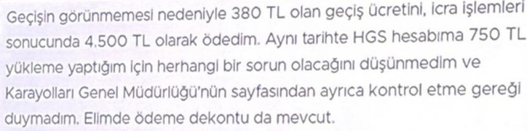 Aynı konudan mağdur olan kişiler de sosyal medyalarında bu şikayetlerini dile getiriyor. Bir vatandaş 380 liralık geçiş ücretini 4 bin 500 TL ödediğini şu ifadelerle anlattı;