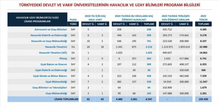 Sözcü'nün haberine göre Pilotaj (363), matematik mühendisliği (227), uçak mühendisliği (564), kontrol otomasyan mühendisliği (134), gemi makineleri işletme mühendisliği (429), havacılık ve uzay mühendisliği (809), uçak bakım onarım (311), gemi inşaatı ve gemi makineleri (533), elektronik ve haberleşme (529)