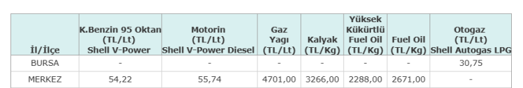 Motorinin litre fiyatı Bursa'da 55 lira 74 kuruşa çıktı.