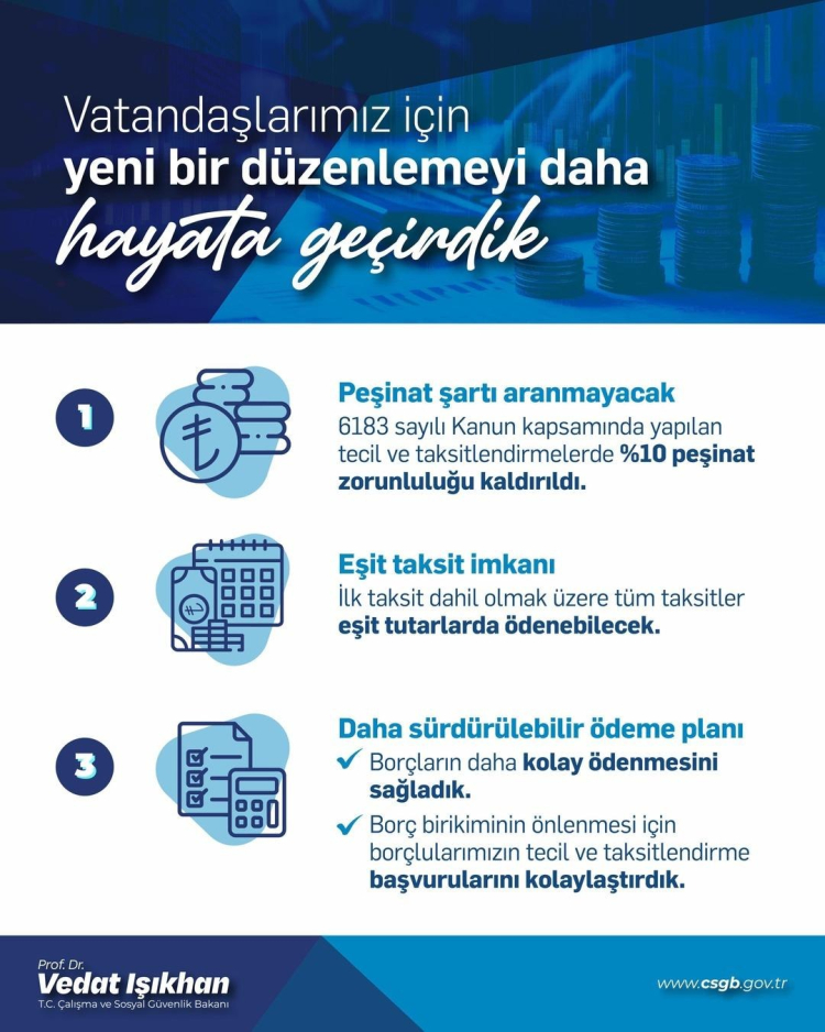 "Sosyal Güvenlik Kurumumuza olan prim borcu ödemelerinde önemli bir kolaylığı hayata geçirdik.