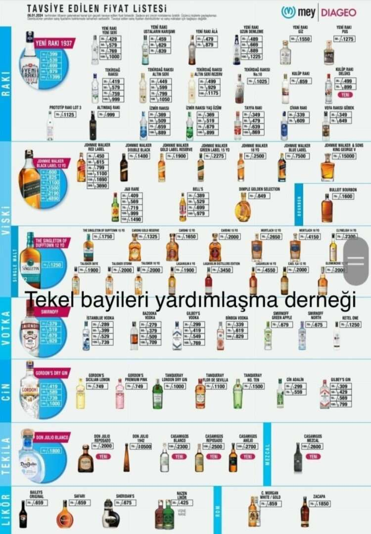 Böylece rakı fiyatlarına da zam yansıtıldı.
