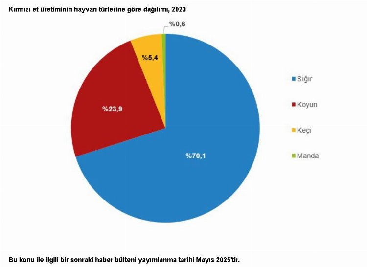 Türkiye istatistik Kurumu (TÜİK), 2023 yılında kırmızı et üretiminin bir önceki yıla göre, yüzde 8,8 arttığını, çiğ süt üretiminin yüzde 0,4 azaldığını açıkladı.