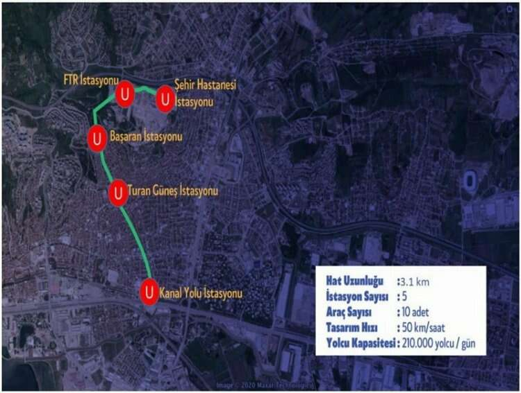 Uraloğlu; Kanal Yolu, Turan Güneş, Başaran, FTR ve Şehir Hastanesi olmak üzere beş istasyondan oluşan 3,1 kilometrelik hattın yapımını bir buçuk yıldan kısa sürede tamamladıklarına işaret etti.