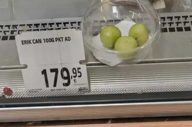 Sezonun ilk can erikleri toplanarak pazara sunulurken bir süper markette kap içine konmuş halde satılan sadece 3 adet eriğin fiyatının 179 lira 95 kuruş olduğu görüldü. Bu hesaba göre 1 adet yeşil eriğin fiyatı yaklaşık 60 liraya denk geliyor.