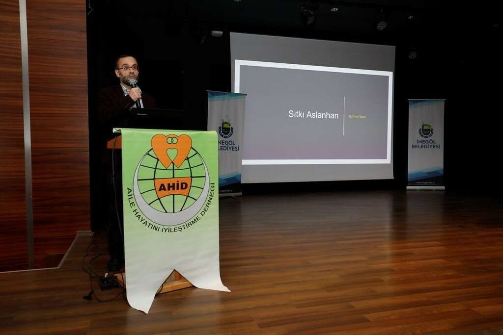 Bursa'da İnegöl Belediyesi'nin AHİD işbirliği ile gerçekleştirdiği "Huzurlu Aile Mutlu Gençlik" seminerleri, kişisel gelişim uzmanı Sıtkı Aslanhan semineriyle başladı.
