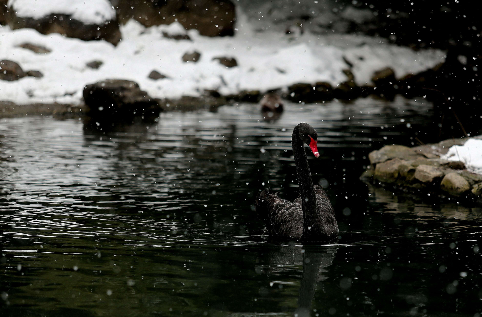 Kanatlı hayvanların barındığı alanlarda ise, kar altındaki siyah kuğu güzel görüntüler oluşturdu.