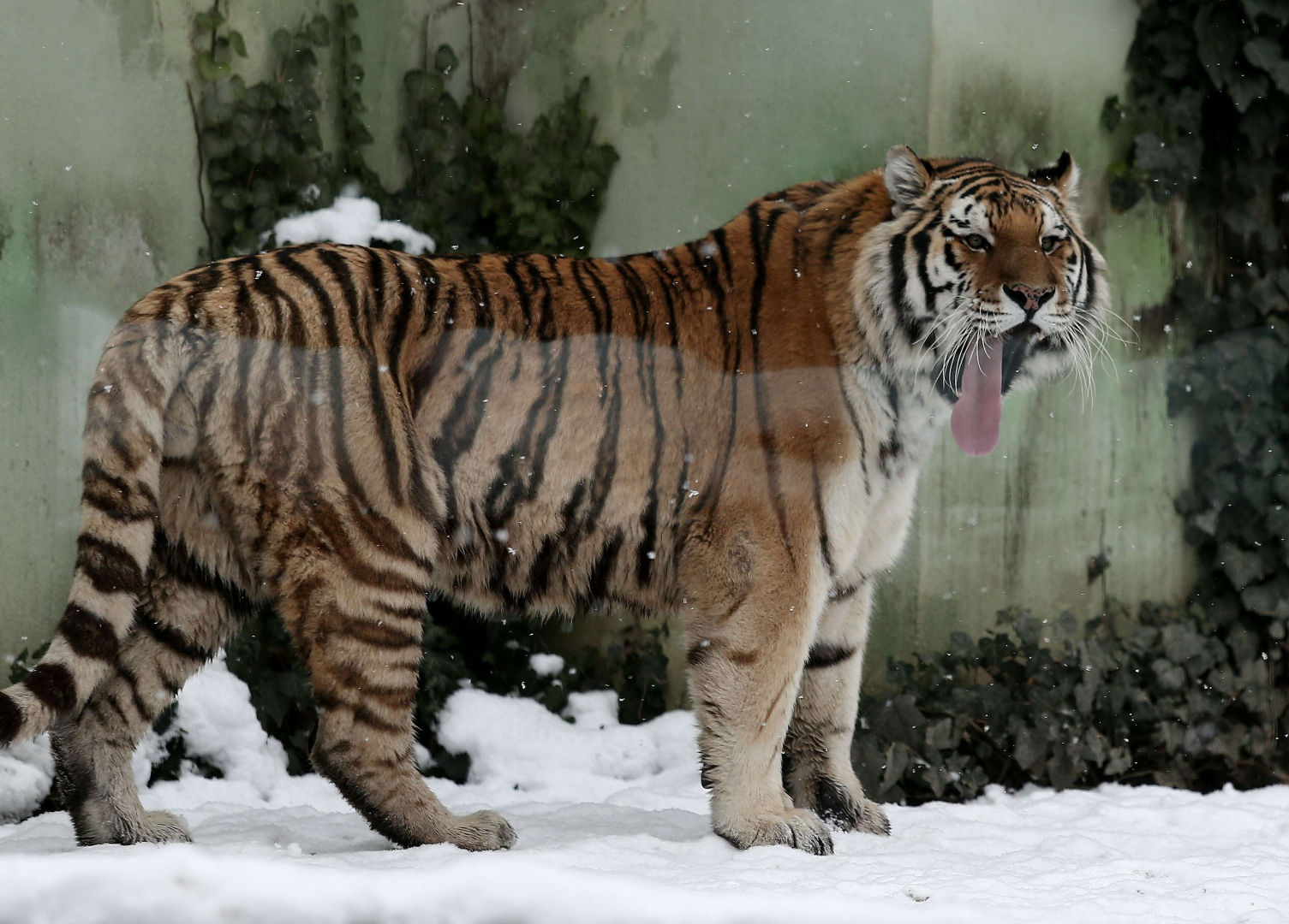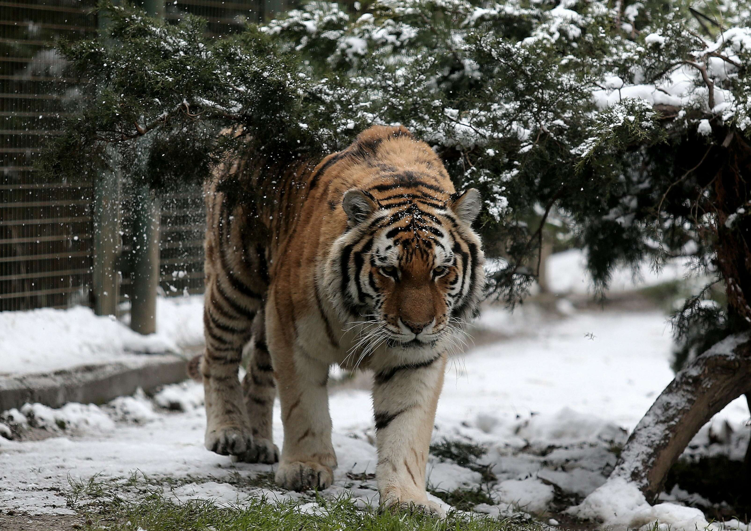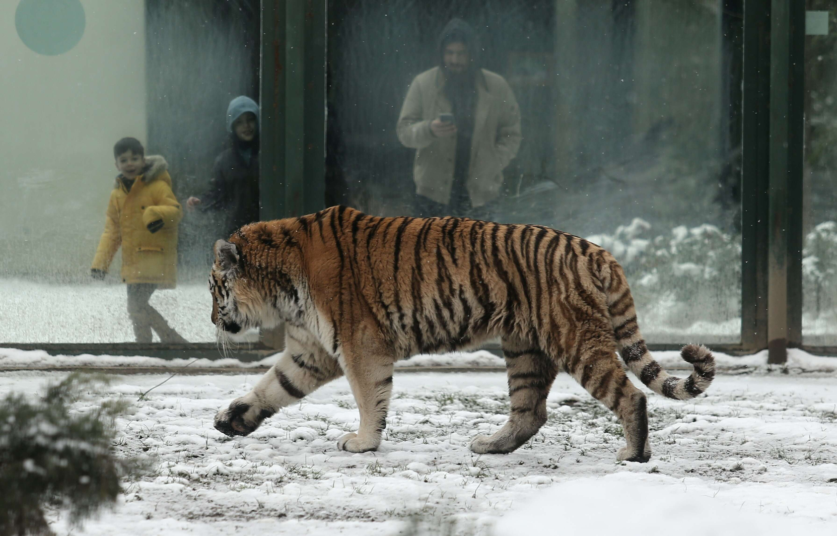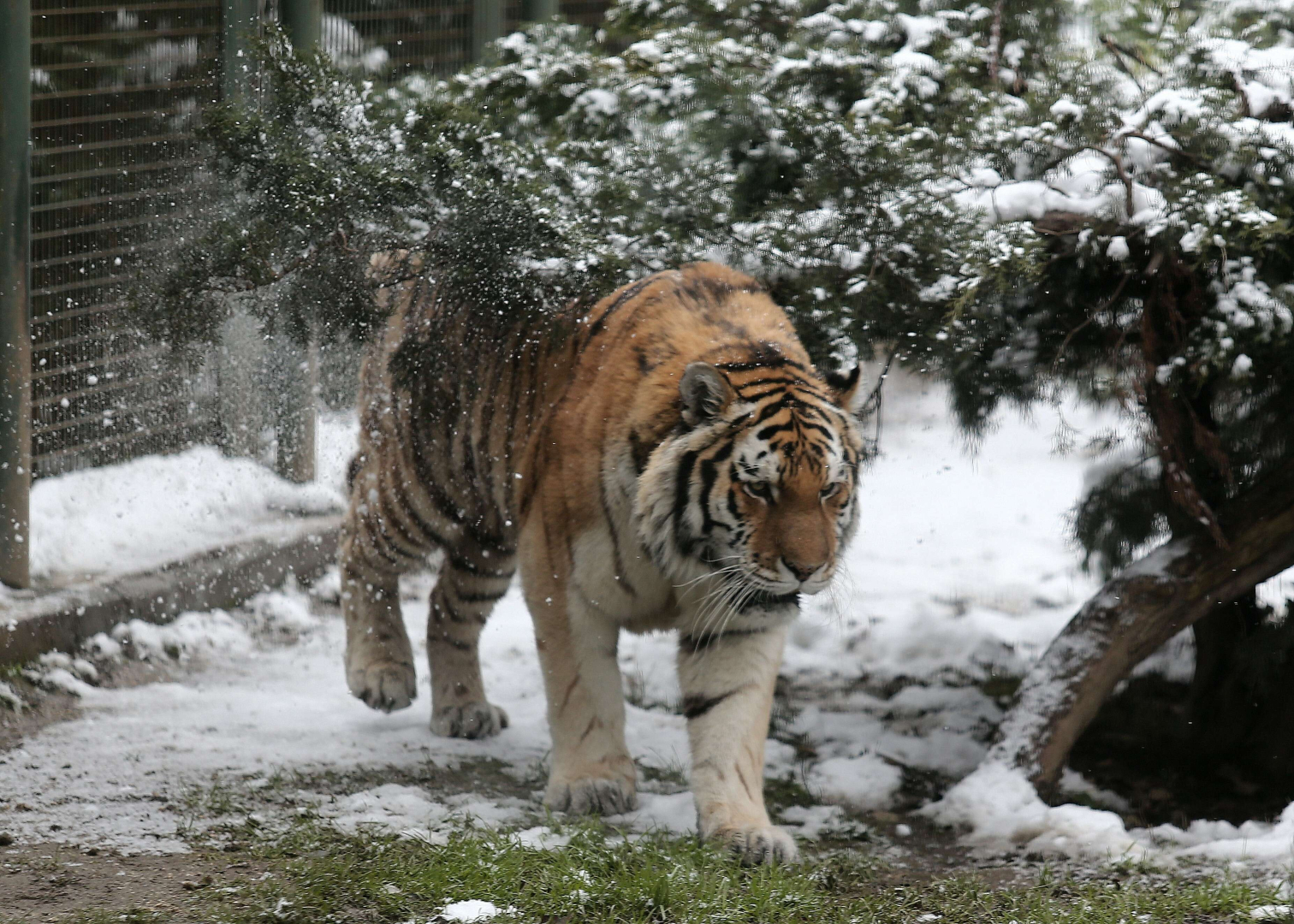 Sıcak iklim canlıları da, karda kafeslerinden çıkarak kendileri için hazırlanan alanlarda gezinmeyi ihmal etmedi. Kar en çok kaplanların keyfini yerine getirdi.