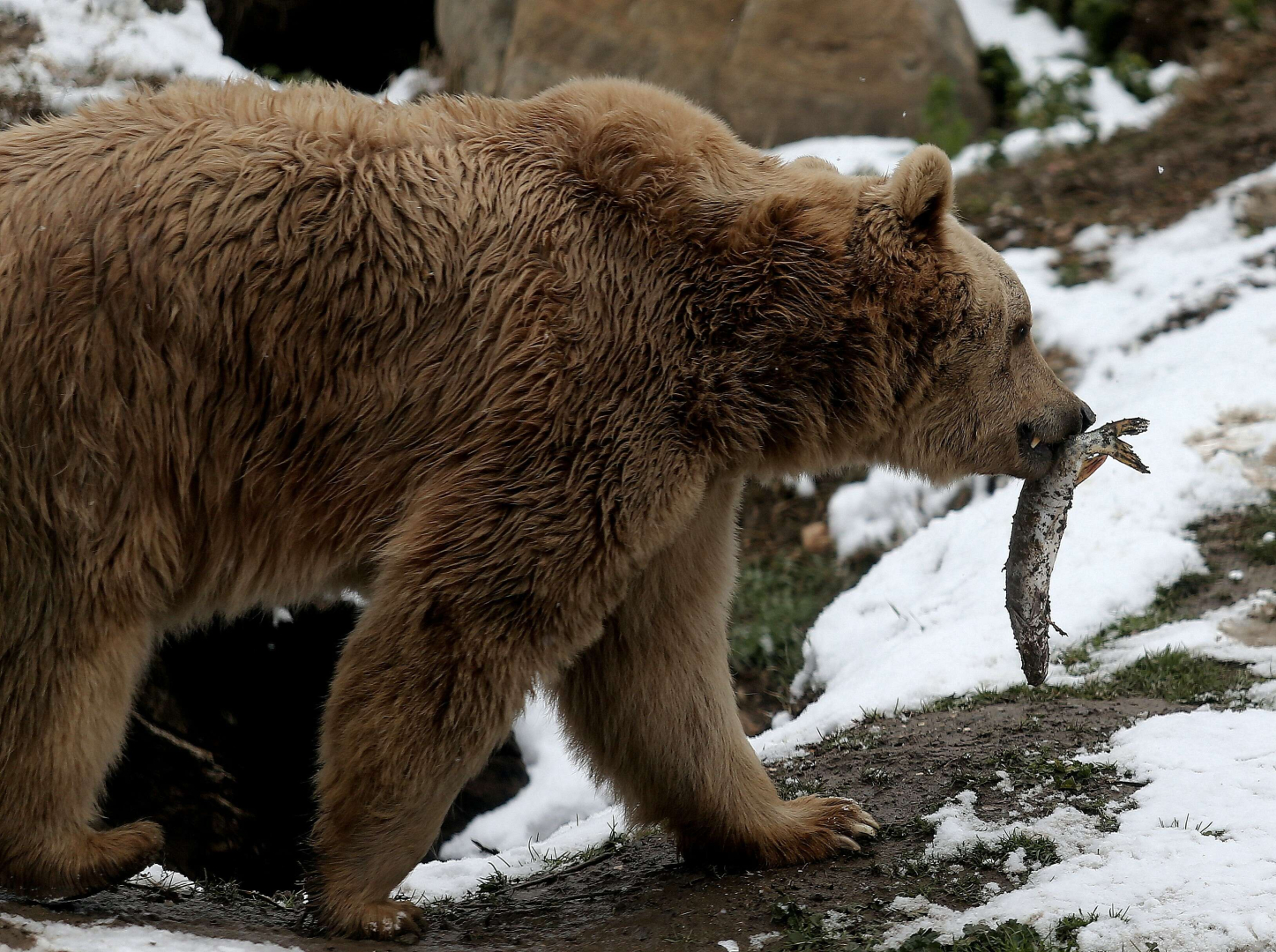 Kışın iyi beslendikleri için kış uykusuna yatmayan ayılar için de hazırlanan özel yiyecekler toprağa gömüldü ve ayılar gömülü balıkları çıkartarak kar üstünde ziyafet çekti.