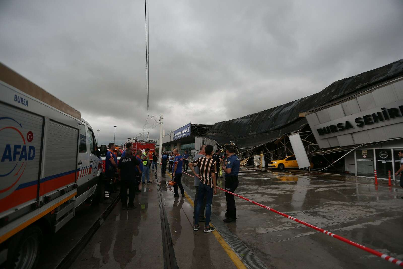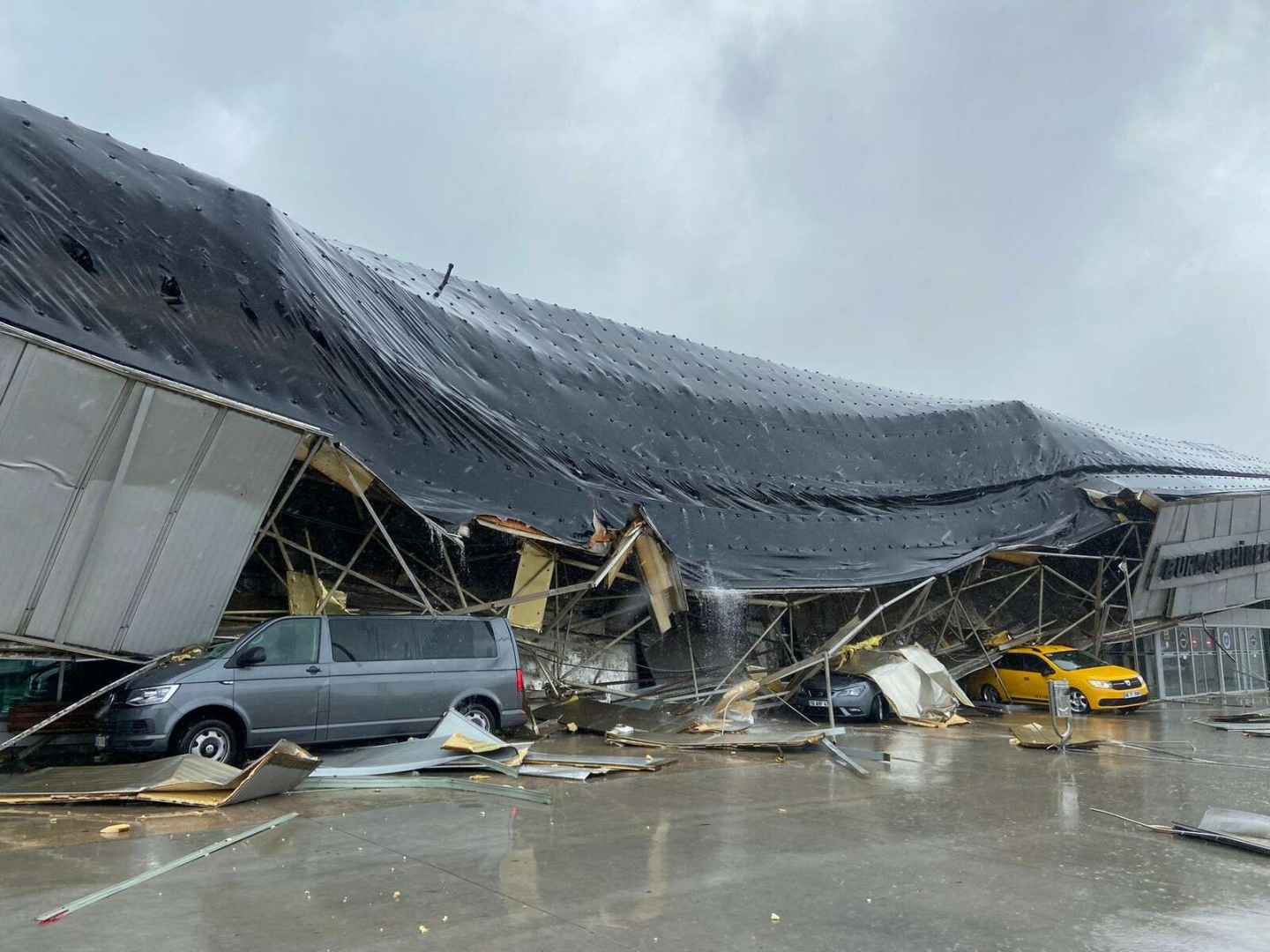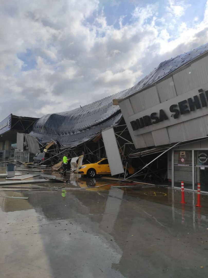Şehirlerarası Otobüs Terminali'nin çatısı fırtına ve yıldırım düşmesi sonucu çöktü. Olayda yaralanan olmazken, 3 araç hasar gördü.