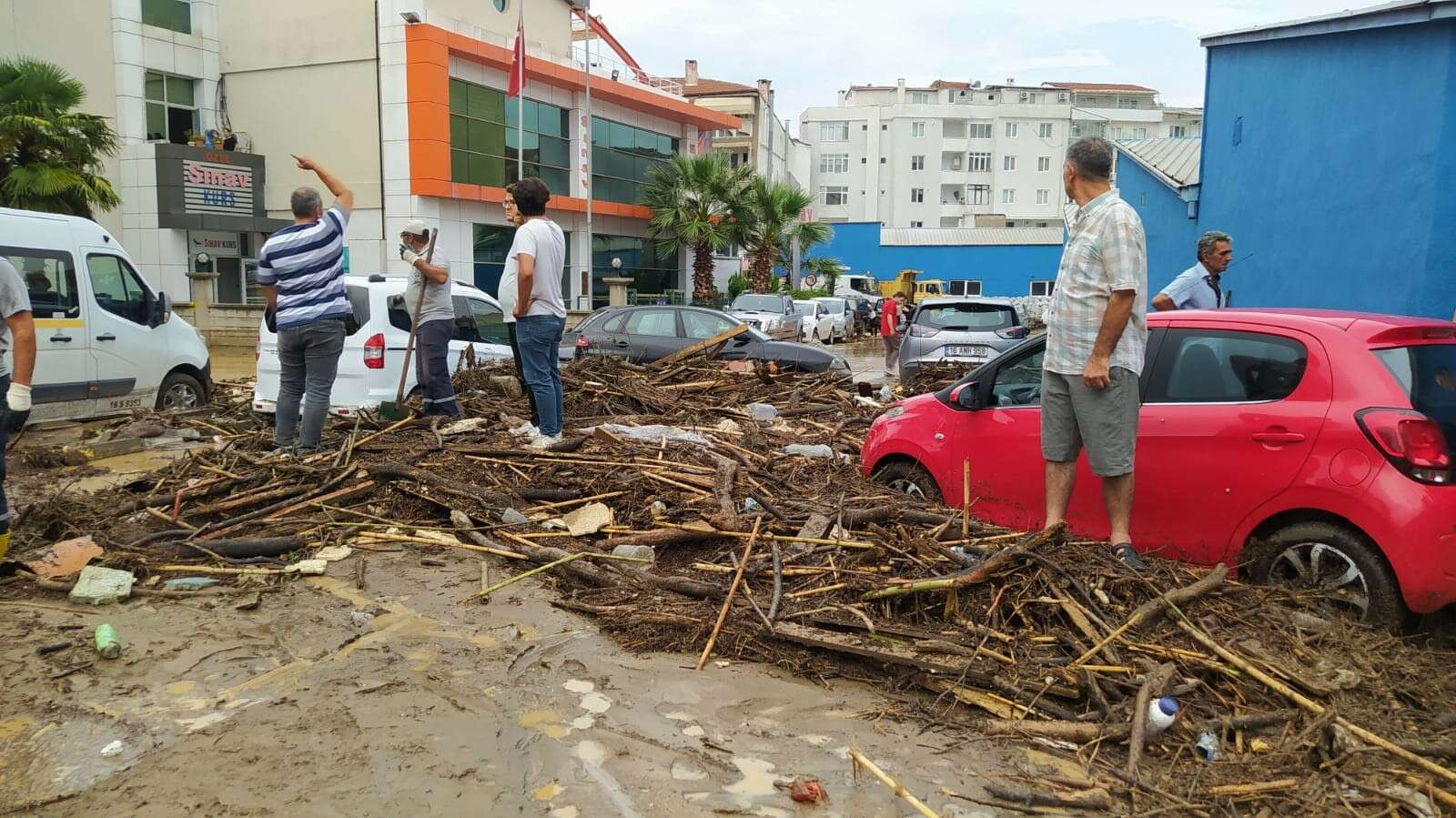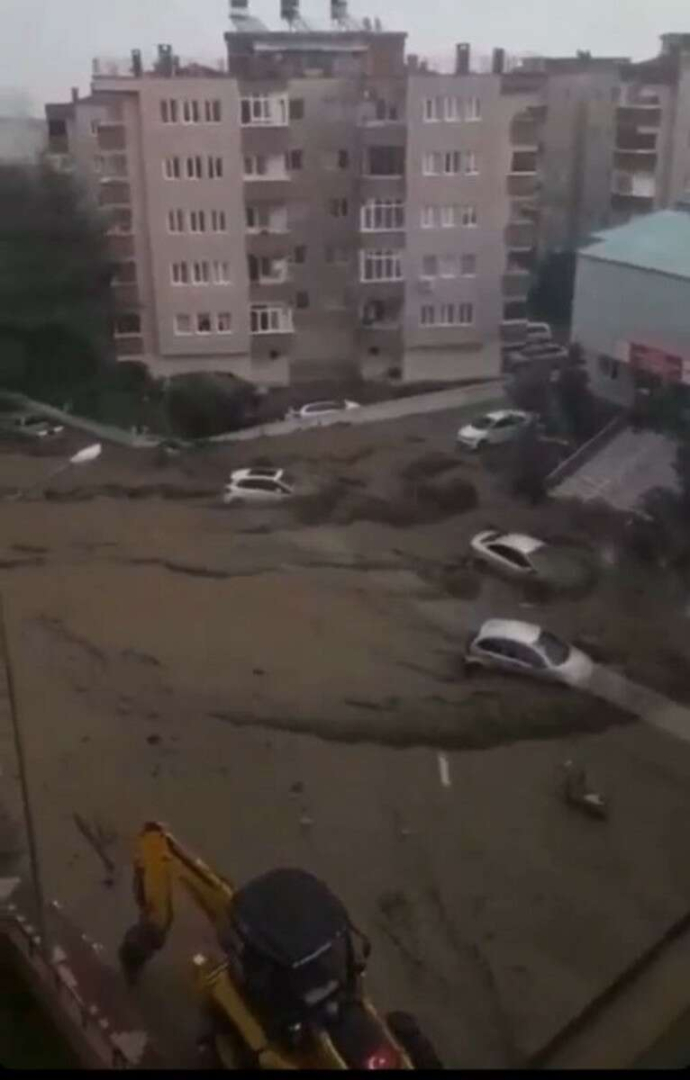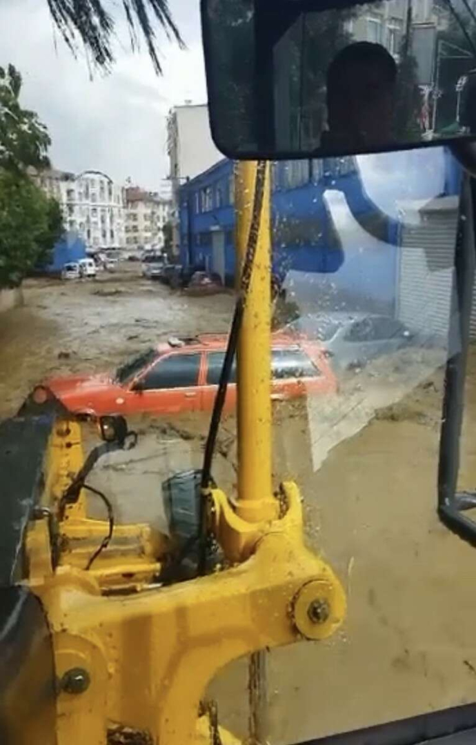 Bazı otomobiller de sel sularında sürüklenerek hasar gördü.