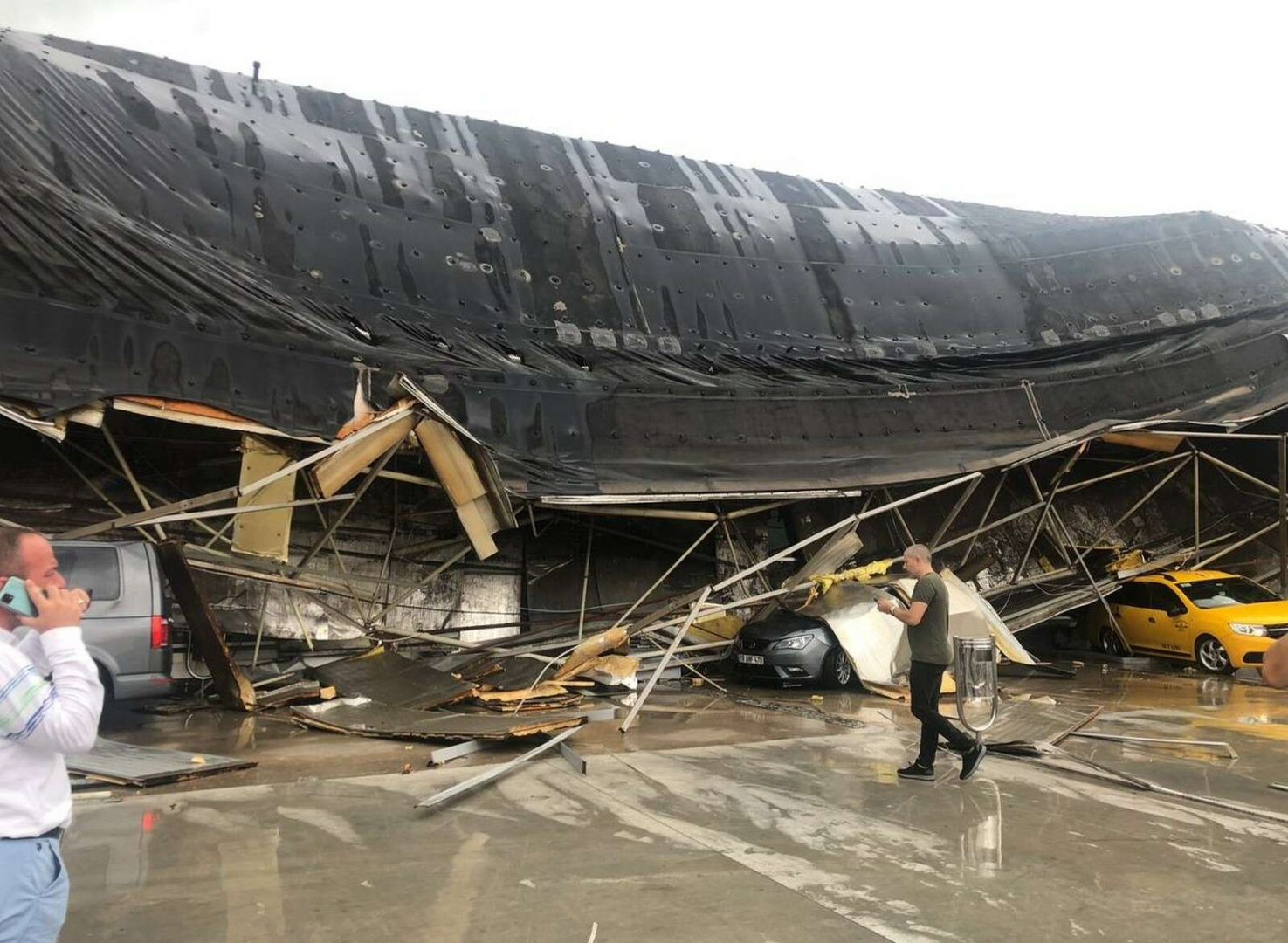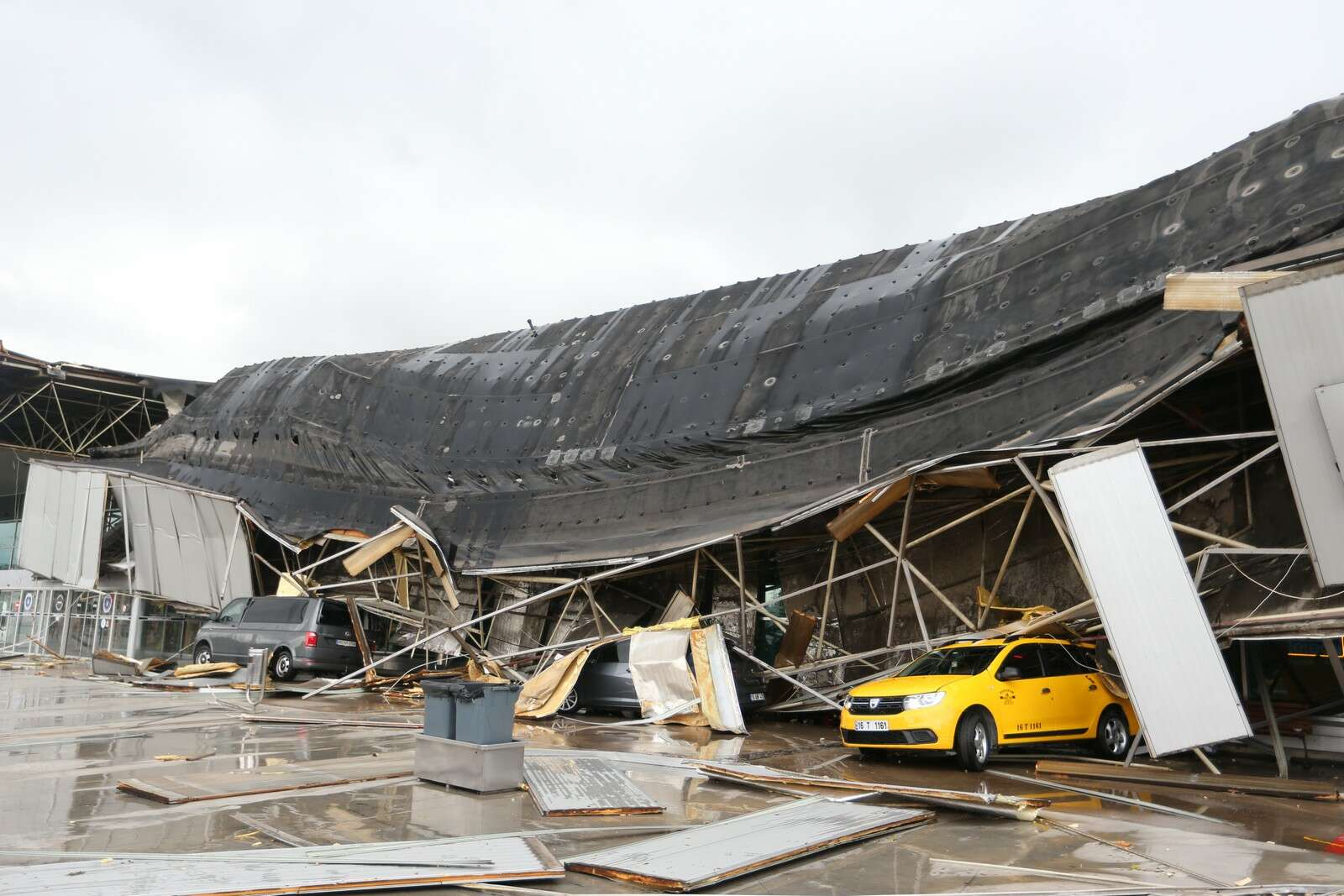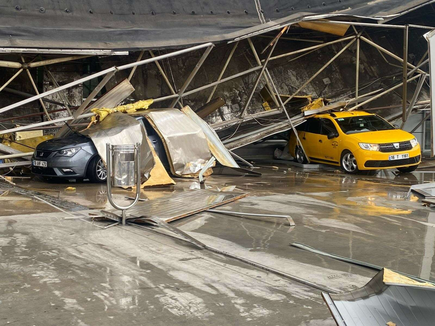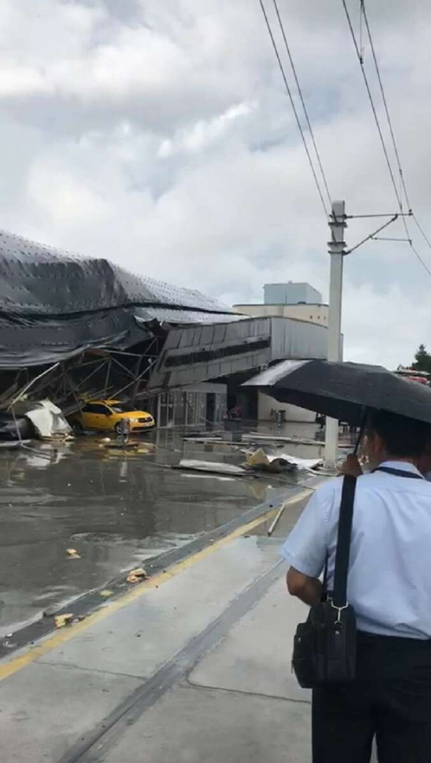 Bu tedbirden 4-5 dakika sonra ise fırtına ve yıldırım düşmesi sonucu terminalin çatısı bir gürültüyle göçtü.
