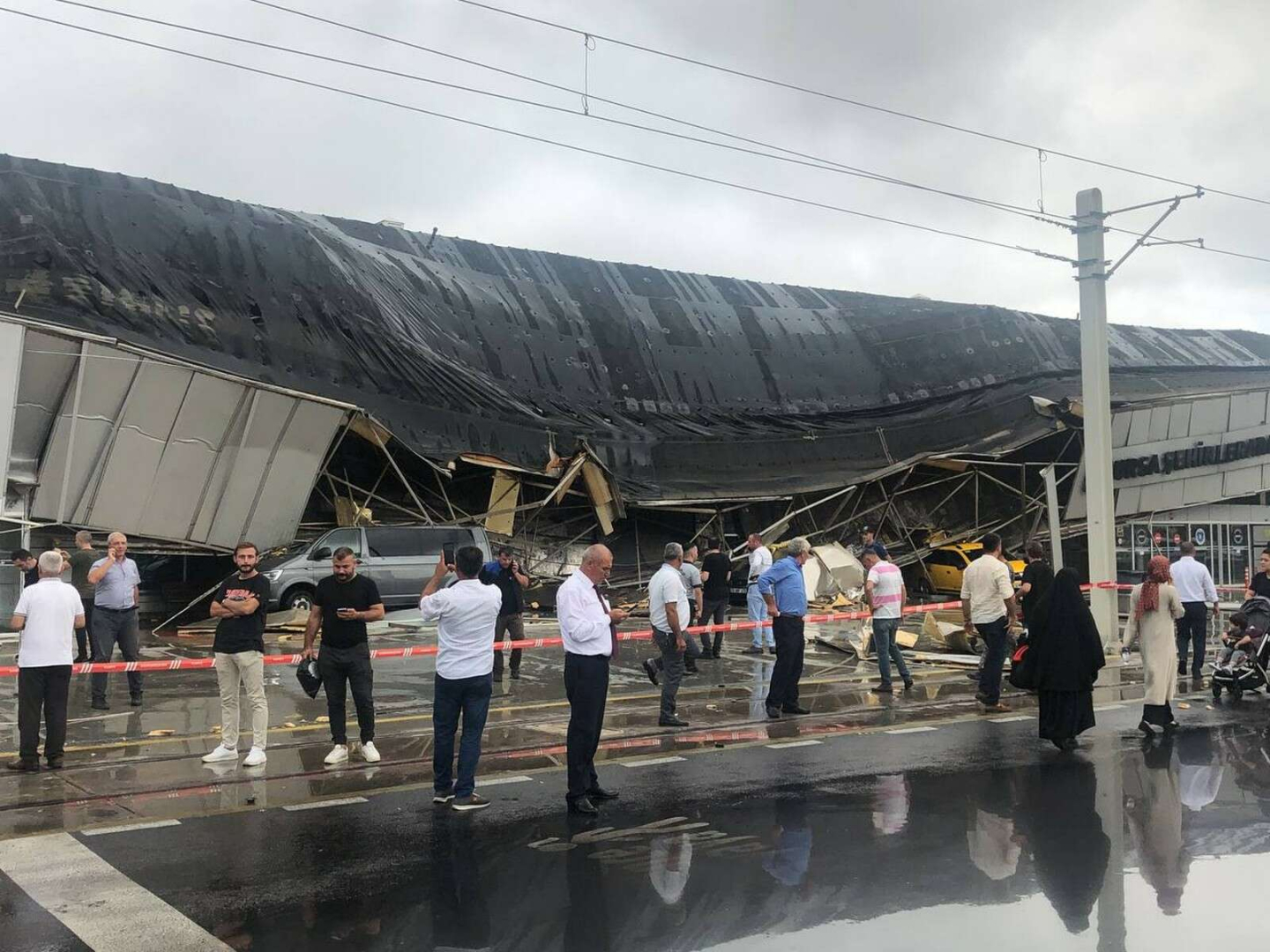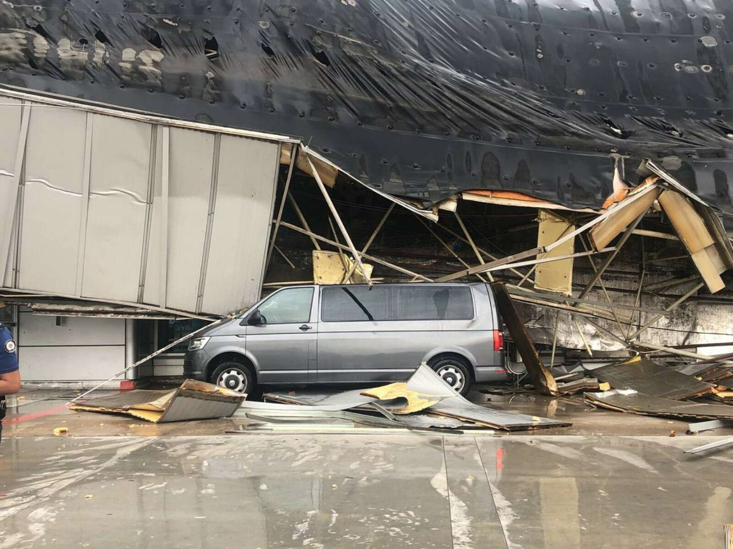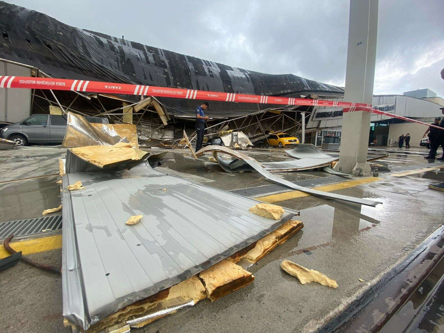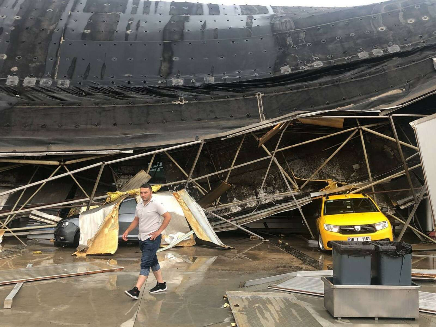 Bu tedbirden 4-5 dakika sonra ise fırtına ve yıldırım düşmesi sonucu terminalin çatısı bir gürültüyle göçtü.