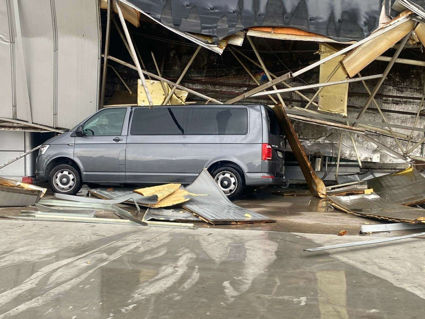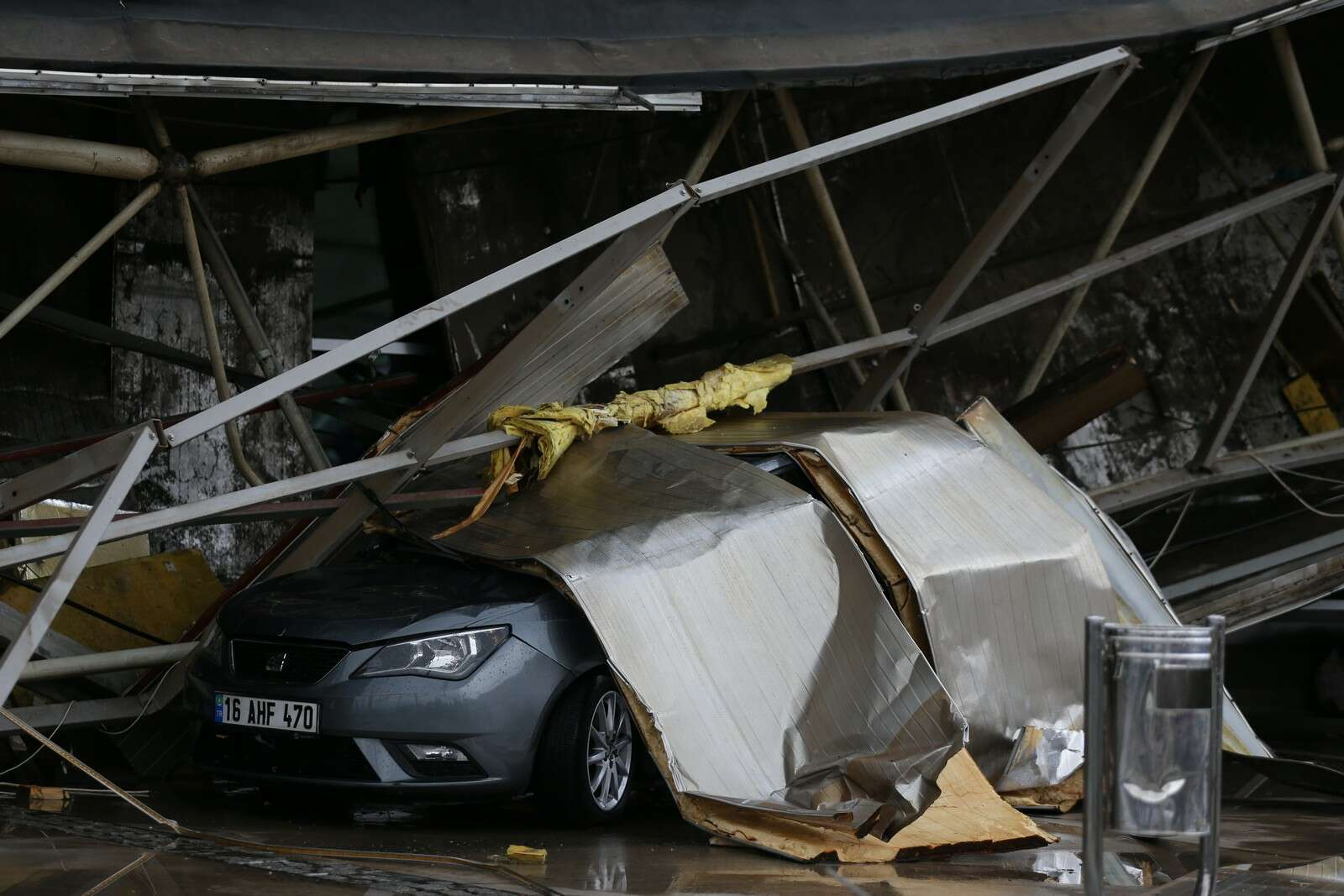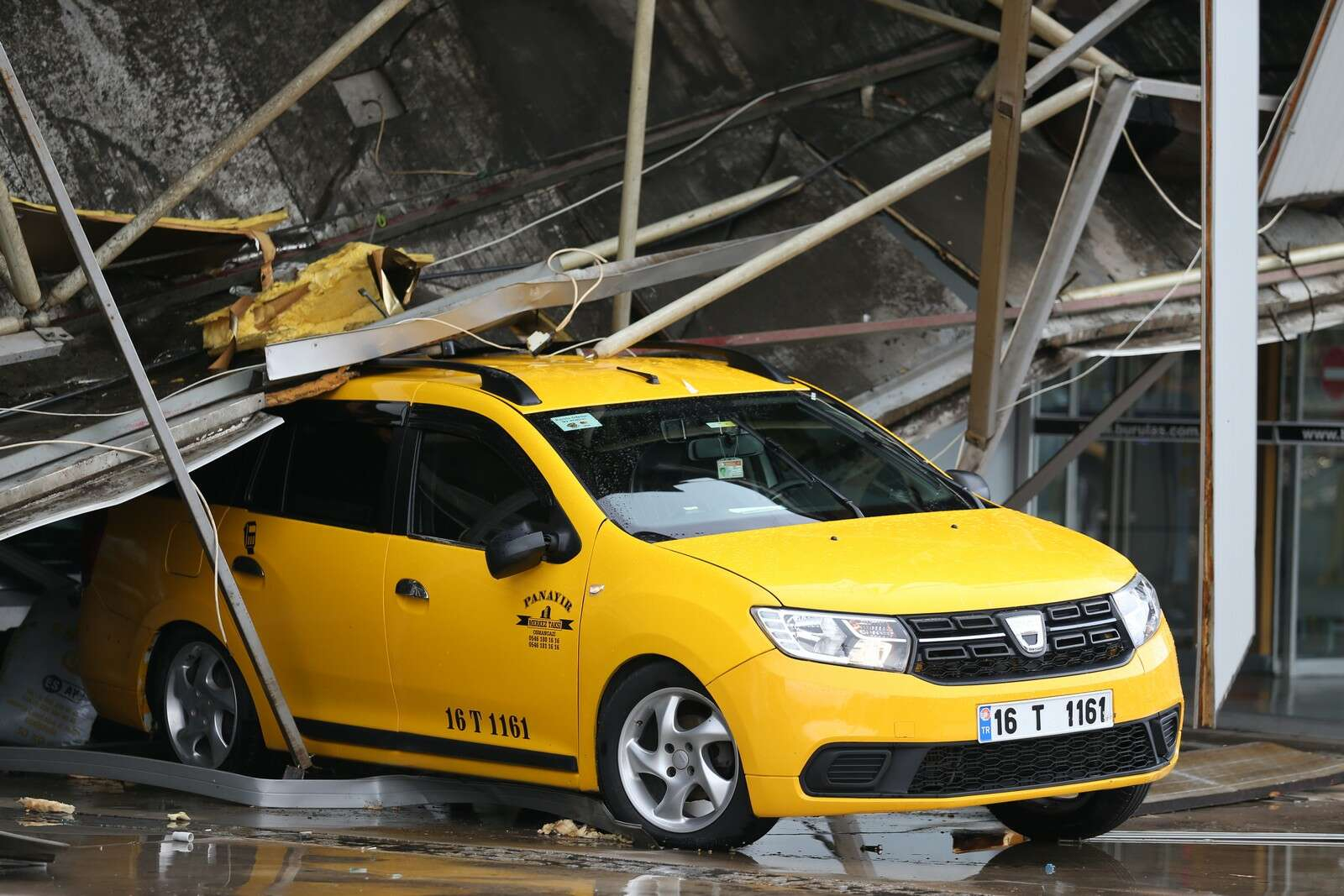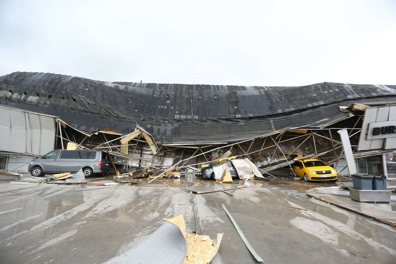 Olayda herhangi bir kimse yaralanmazken, üç araç çöken çatının altında kaldı.