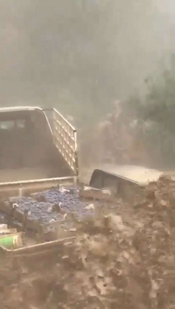 Merkez Osmangazi ilçesi Karabalçık köyünde de sel suları araçları sürükledi. Tarladan erik hasadından dönerken kamyonetiyle sel sularında mahsur kalan 65 yaşındaki Ömer Eydi de zor anlar yaşadı. Genç bir köy sakini, "Ömer Amca diğer kamyonete bin" diye bağırarak yaşlı adamı yönlendirdi. Yaşlı adam son anda sel sularından kurtuldu. Öte yandan Mudanya'da da bir çok noktada araçlar sel sularıyla birlikte sürüklendi. Bu anlar vatandaşlar tarafından kamerayla kayıt altına alındı.