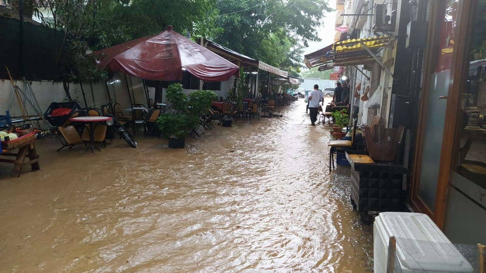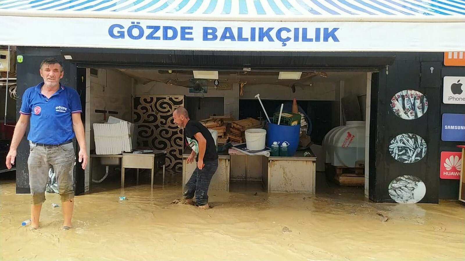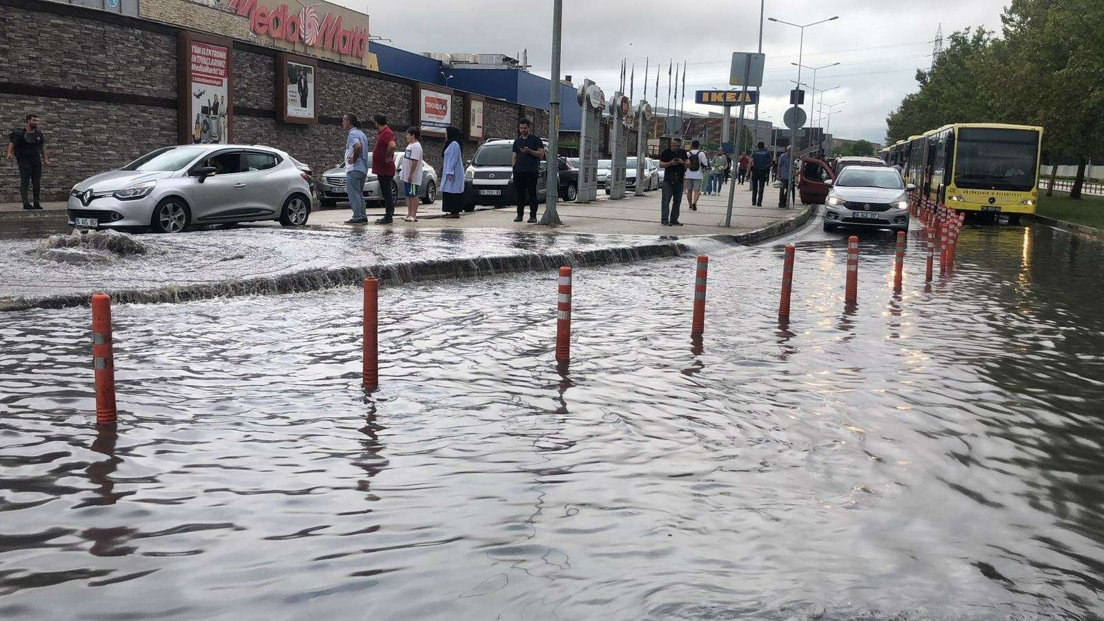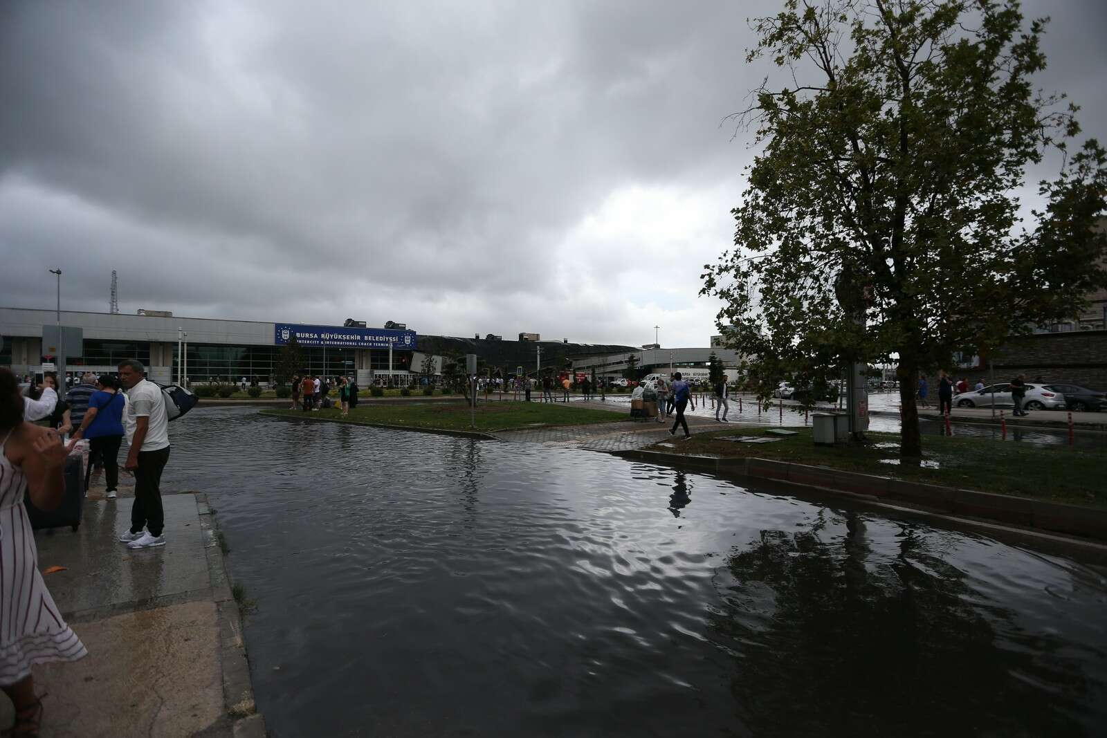 Öte yandan terminalin yanındaki bir alışveriş merkezini de su bastı.