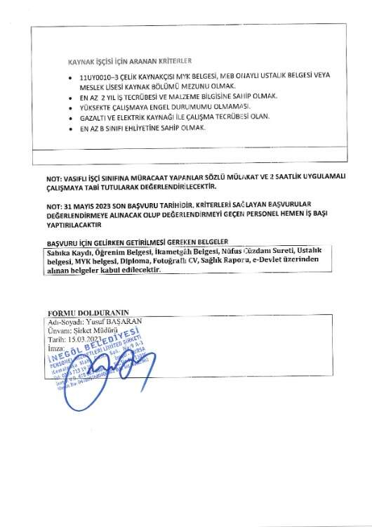 Bursa Büyükşehir, İnegöl, Mustafakemalpaşa, Osmangazi ve Gemlik belediyeleri çok sayıda kadroda istihdam etmek üzere belediyeye ait şirketlerde KPSS şartsız personel istihdam edecek. İşte aranan şartlar ve alım yapılan meslekler...
