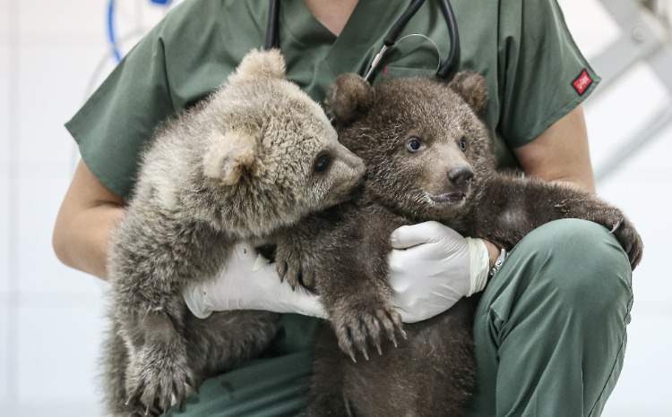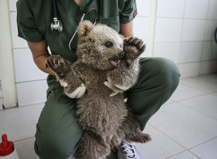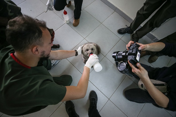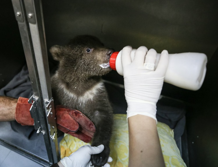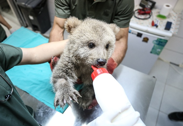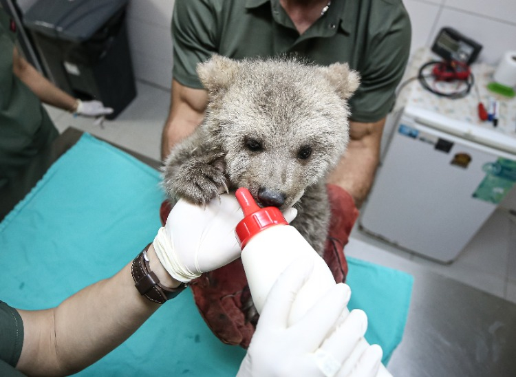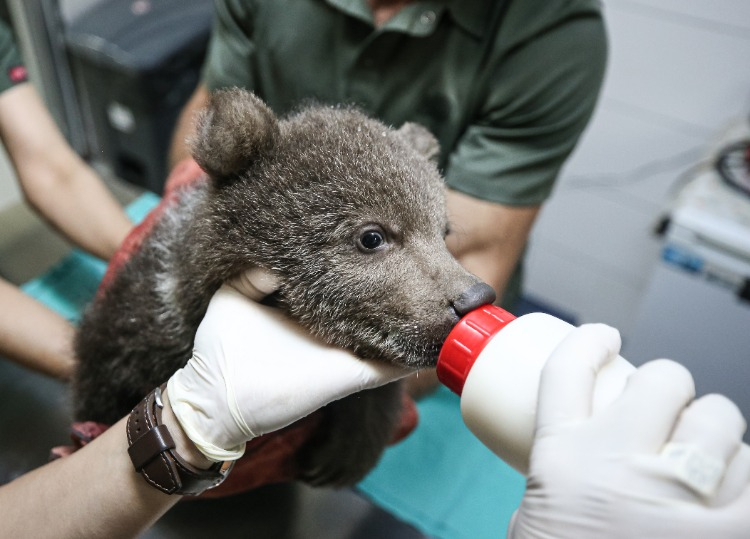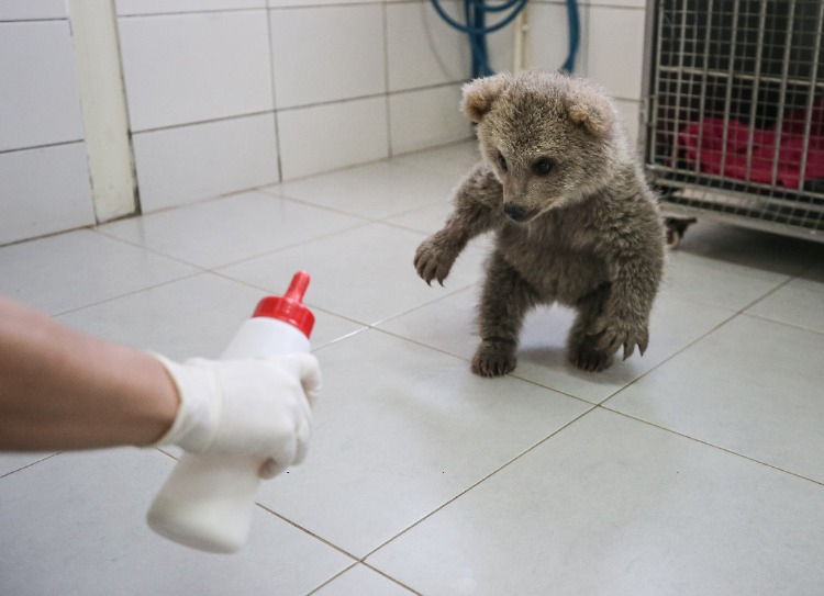 Merkezin maskotu olan ayı yavruları, günde 6 öğün laktozsuz süt, kefir, bal, yumurta, krema ve multivitaminden oluşan karışımla özenle besleniyor.