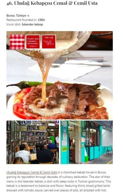 Bursa Uludağ Kebapçısı ise 46'ncı sırada yer aldı.