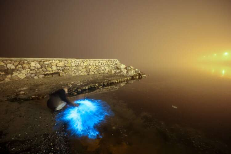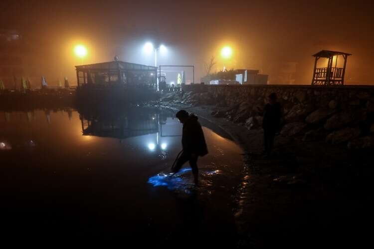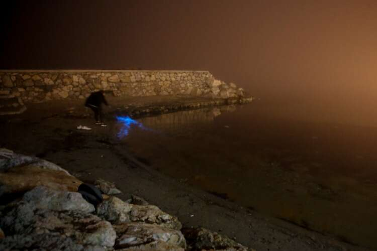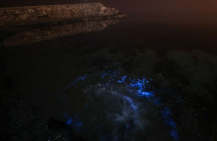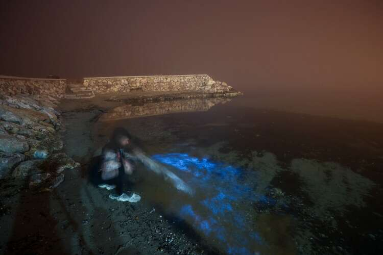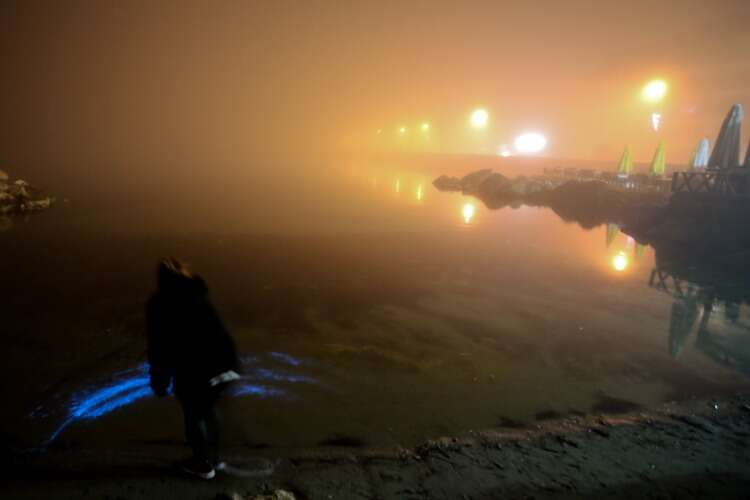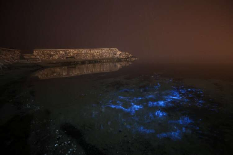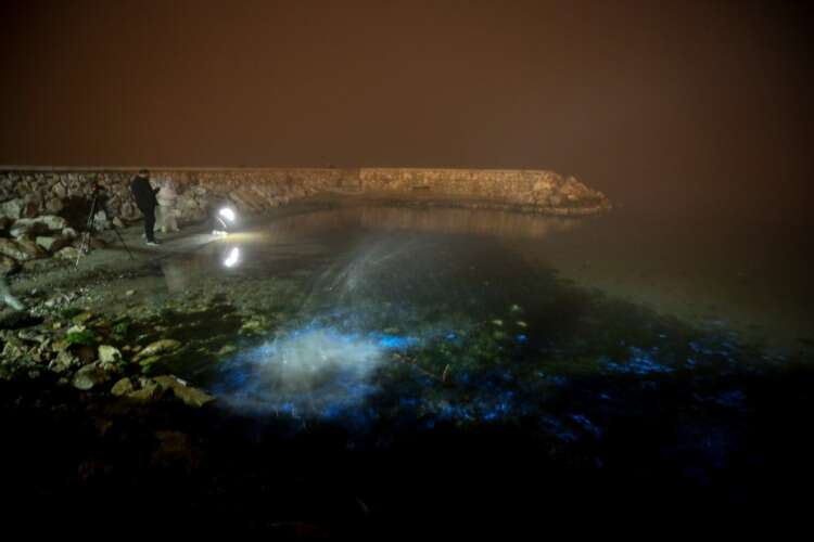Deniz tabanında özellikle kahverengi birikmelerin bulunduğu alanlarda, suya temas edilmesiyle parlak mavi ışığın çıktığı görüldü.