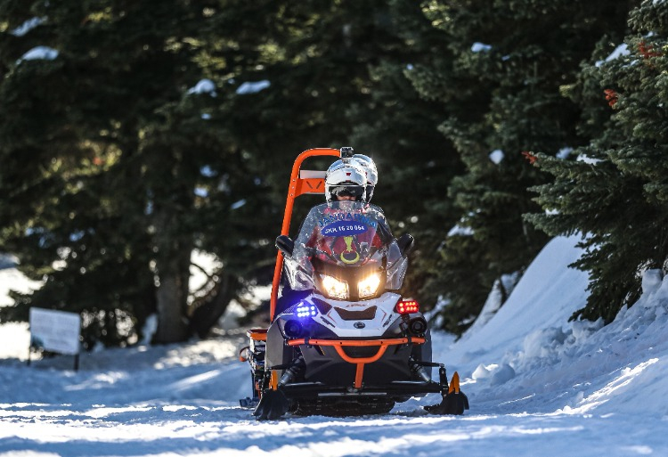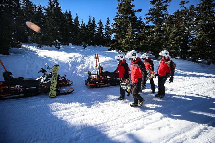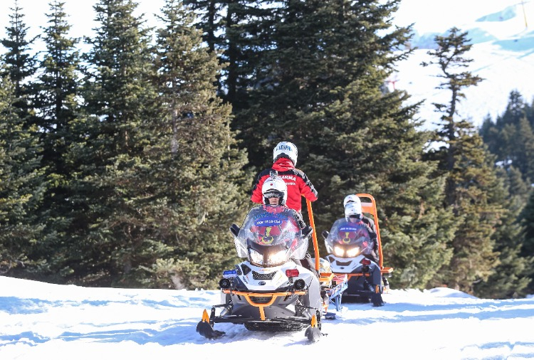 Kar motorlarıyla kısa sürede turistin bulunduğu noktaya giden ekipler, ilk müdahaleyi yaptıktan sonra yaralıyı bulunduğu yerden alıp, kar motorundaki sedyeyle Oteller Bölgesi'ne getirdi.