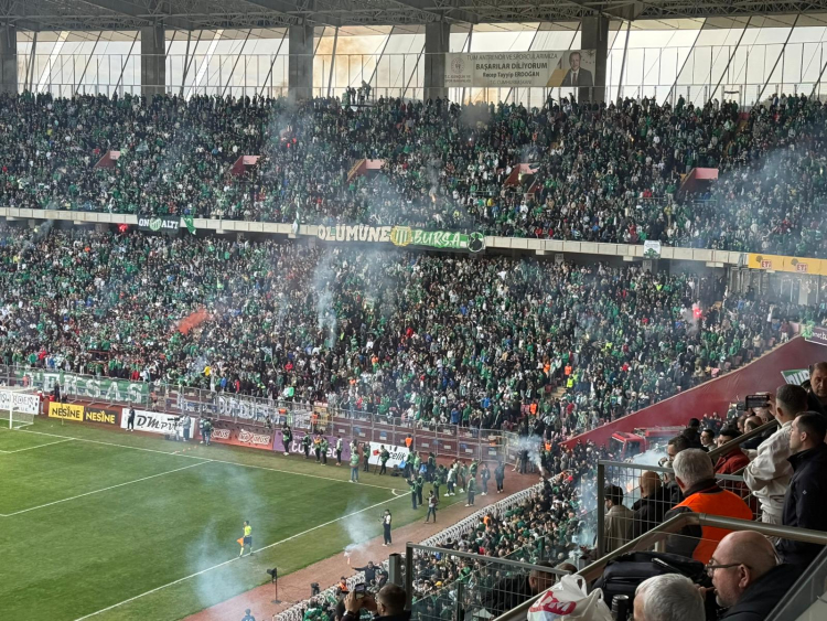 Bursaspor sevdası kilometre tanımadı! Eskişehir’de oynanan kritik mücadelede yeşil-beyazlı taraftarlar tribünleri adeta karnaval alanına çevirirken, ortaya çıkan birbirinden etkileyici kareler büyük beğeni topladı.