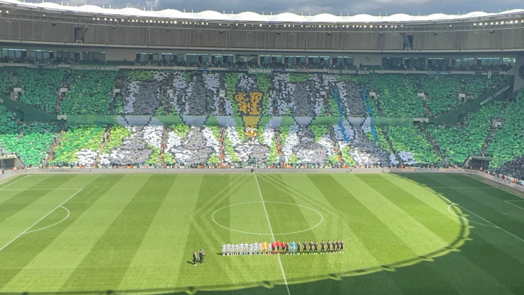 Bursasporlu taraftarlar, Atatürk Spor Kompleksi Matlı Stadyumu'nda futbolseverlere büyük bir görsel şölen sundu.