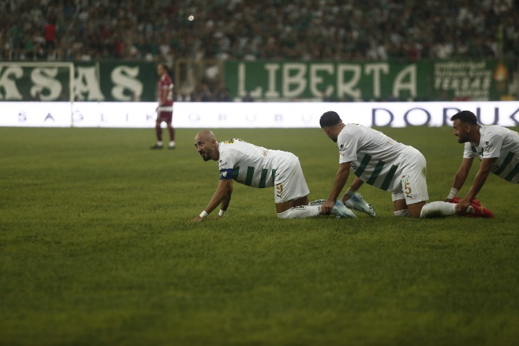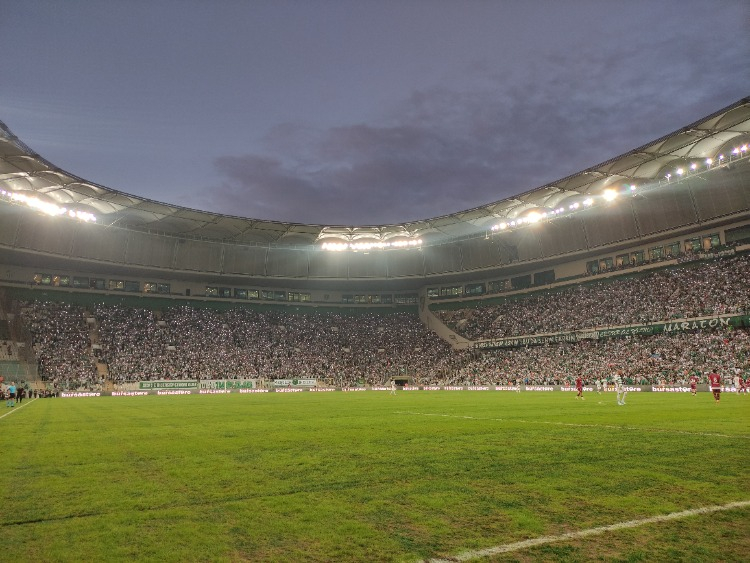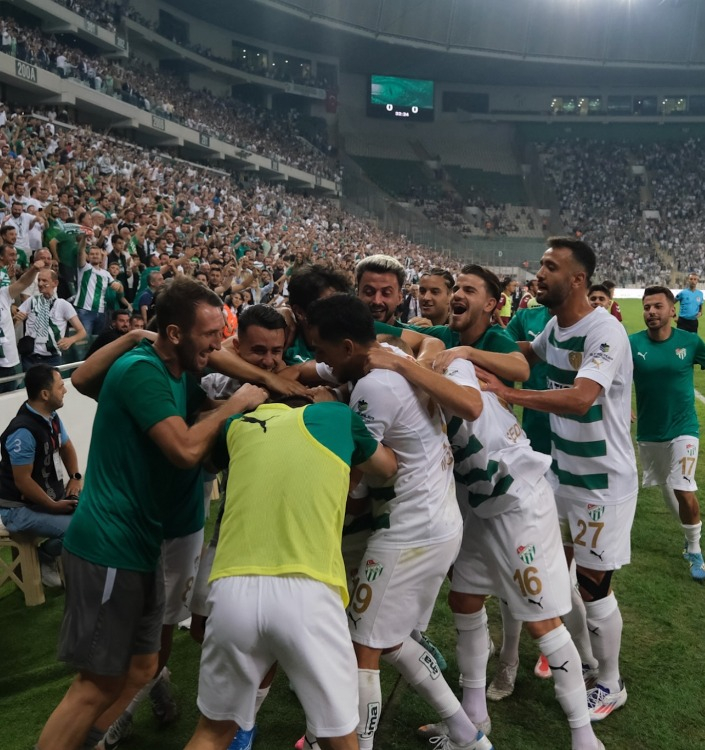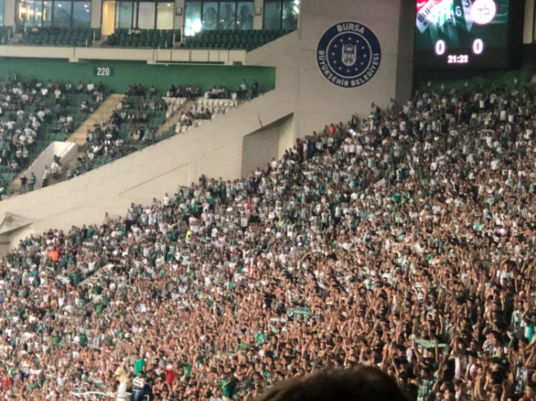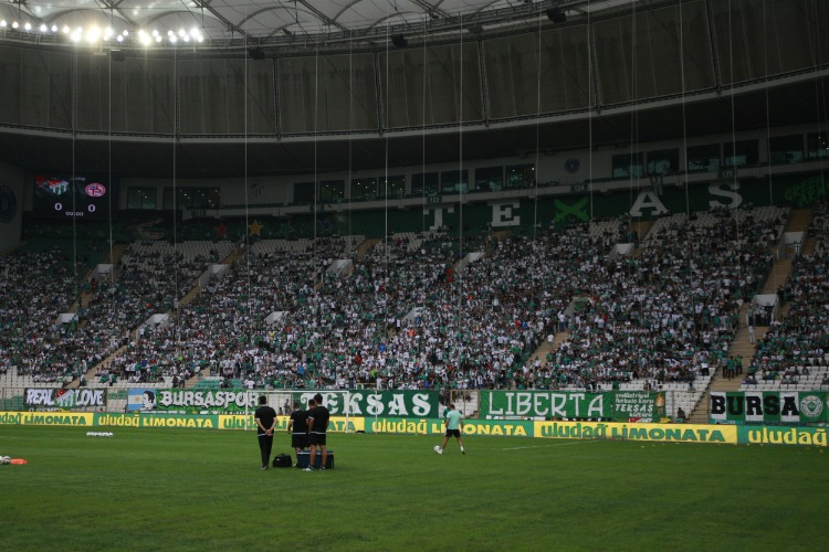 Stadyum çevresinde ve stat içinde güzel görüntülere imza atan Bursaspor taraftarı, kulüplerinin yeniden eski günlerine dönmesinde de başrol oynayacaklarını gösterdi.