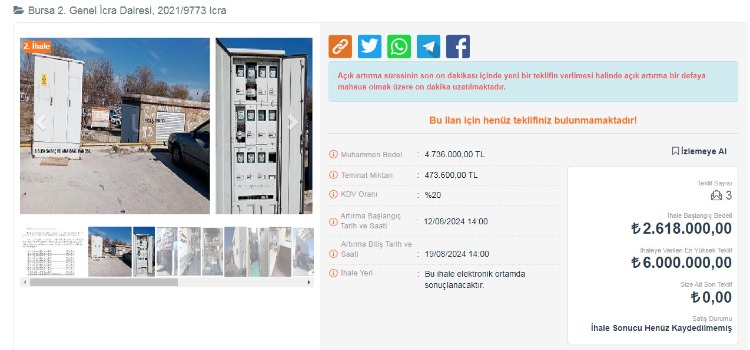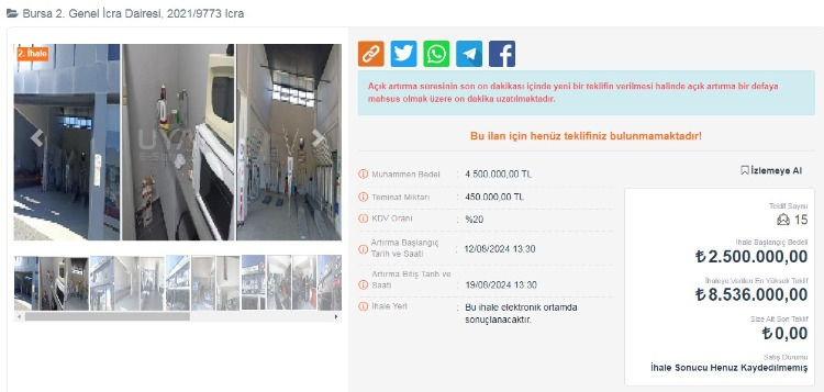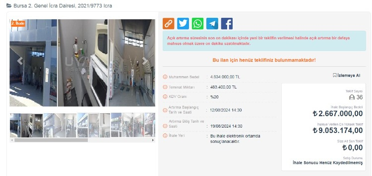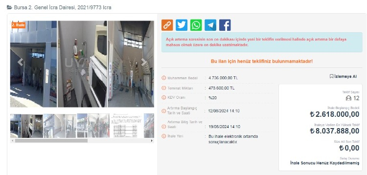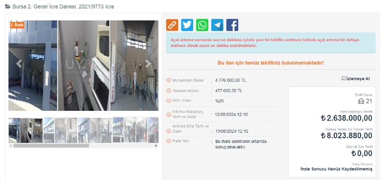 İk açık artırmadaki fiyatlara itiraz gelirse veya talipliler gereken miktarı ödemezse, 12 Ağustos 2024 gübü ikinci bir ihale açılacak ve 19 Ağustos gün saat 12:10'a kadar teklif alınabilecek.