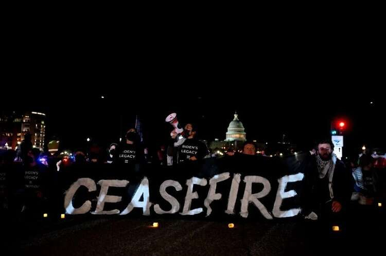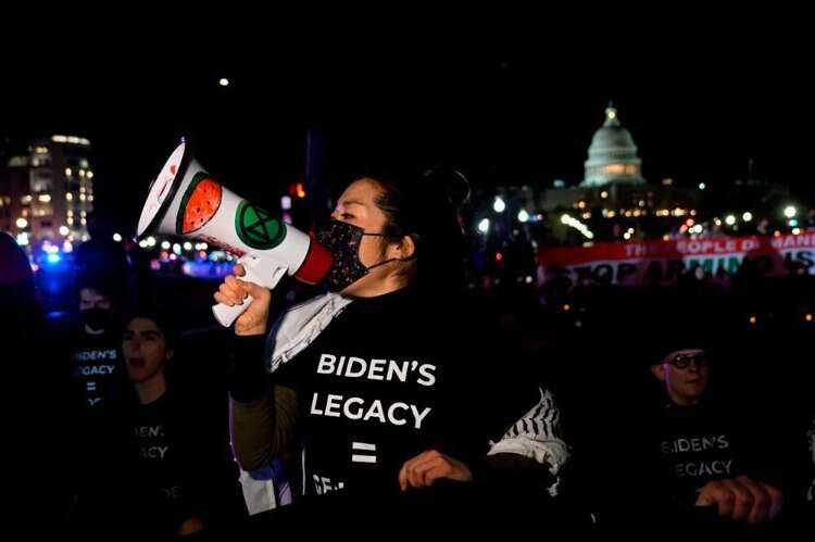 ABD Başkanı Biden'ın Kongre'ye giderken kullanacağı Pennsylvania Caddesi, yüzlerce gösterici tarafından trafiğe kapatıldı.